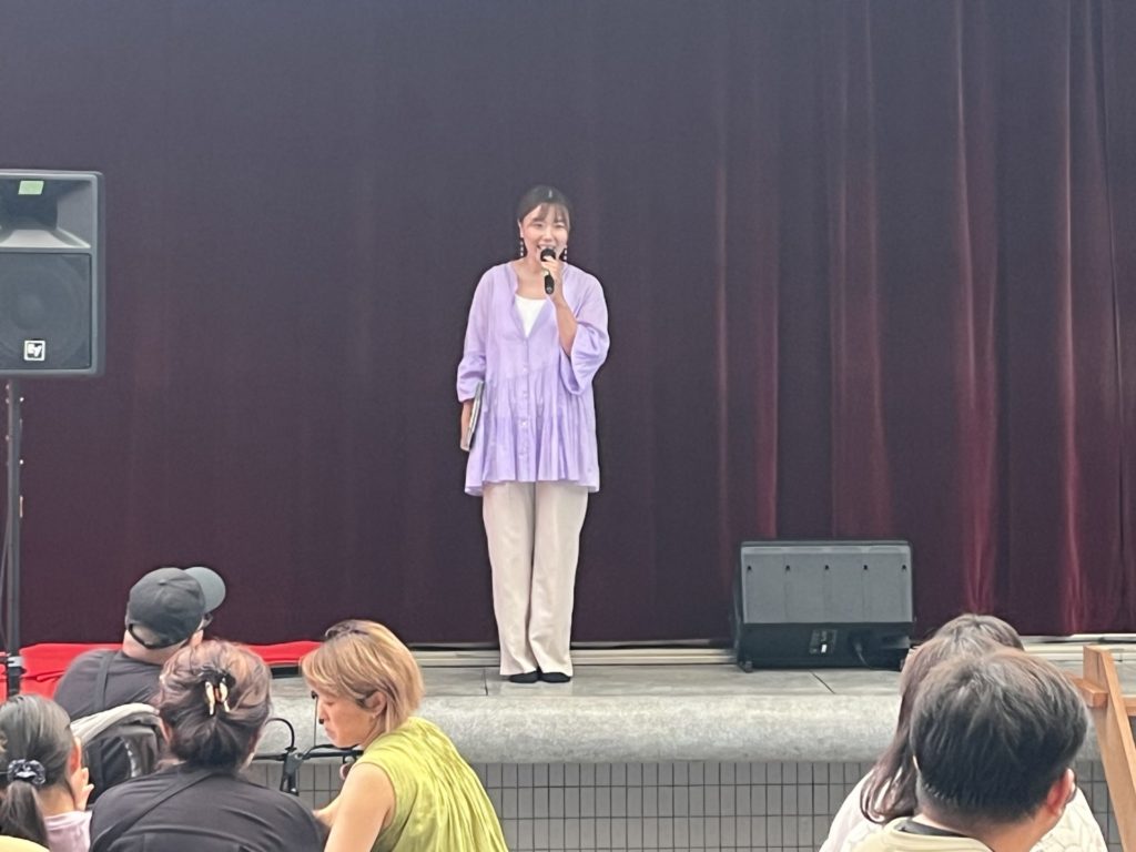 演芸会の始まりです。総合司会は古賀市PR大使「石井美紀」さんにお願いしました。