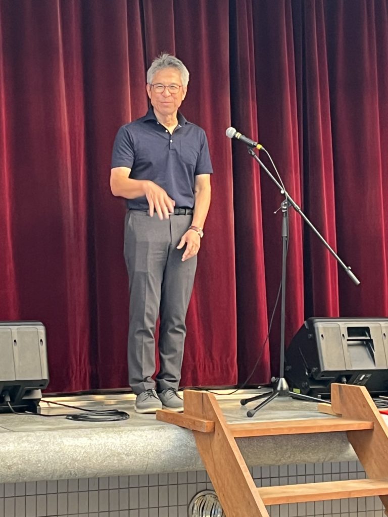 古賀東小学校校長先生の挨拶です。当日は筵内の子供達の担任の先生も多数駆けつけて下さいました!!