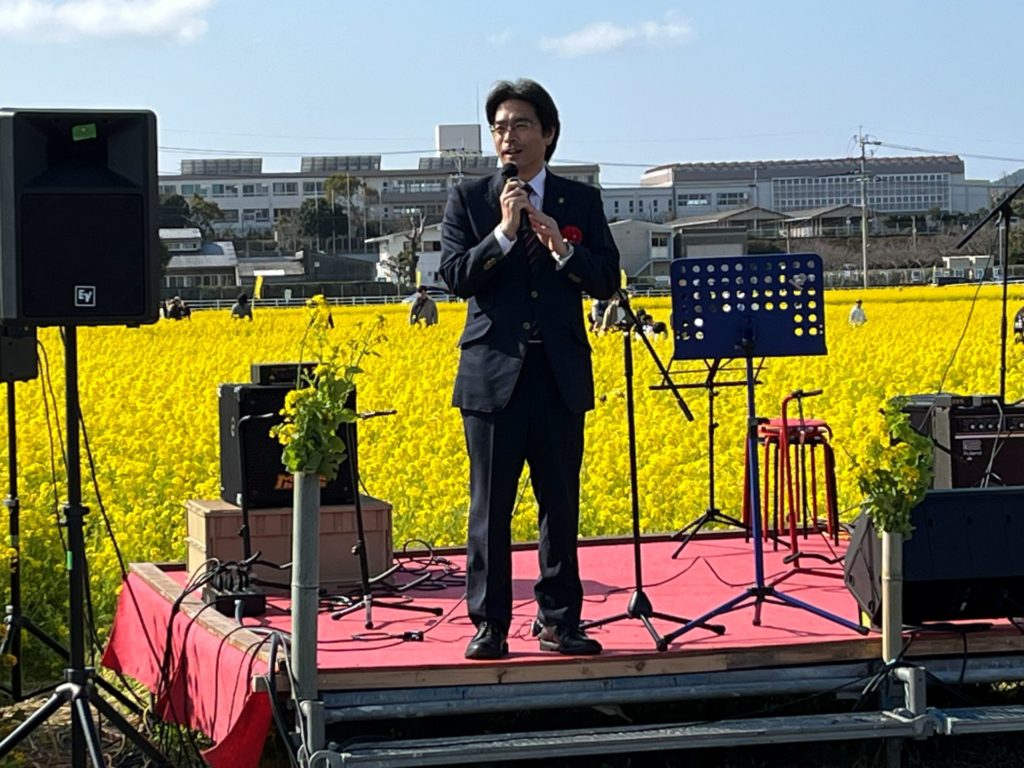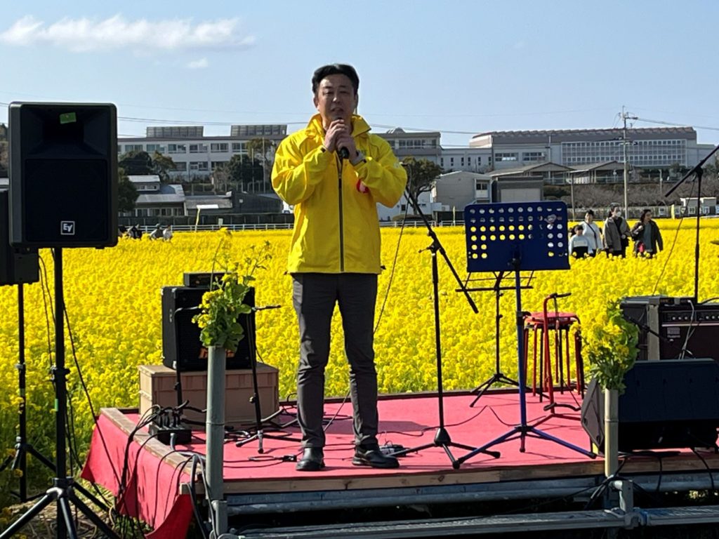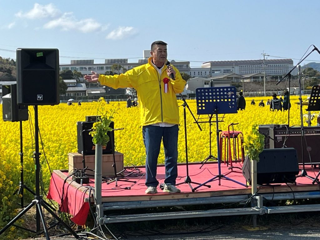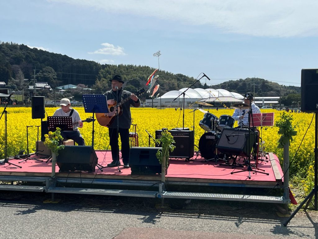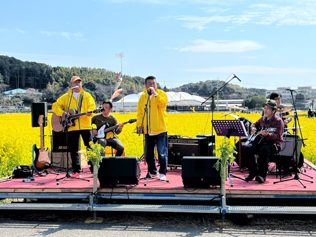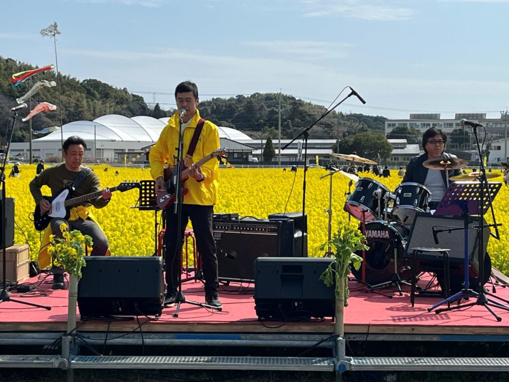 最後に「安武聖二郎氏」が菜の花祭りのために、作詞、作曲した「菜の花ロック」改め「菜の花ソング」を披露してくれました。またアンコール曲はジョンレノンの「イマジン」日本語と最終節は英語の原曲で、会場を魅了してくれました!!